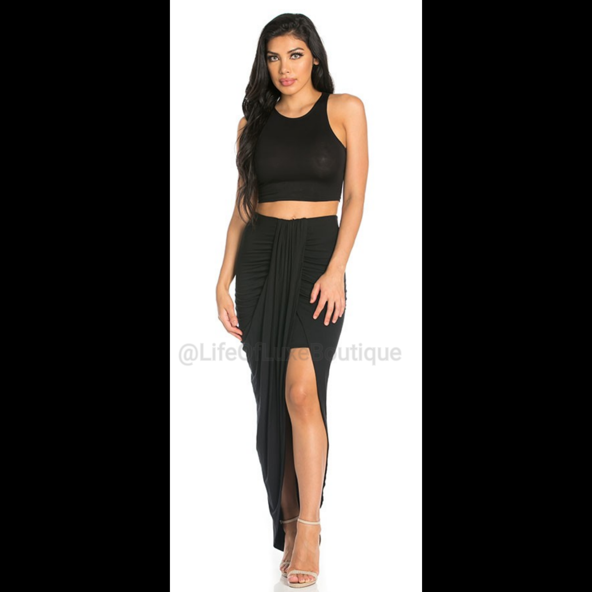 Solid crop top & Solid draped maxi skirt White (Also available in white & Olive)