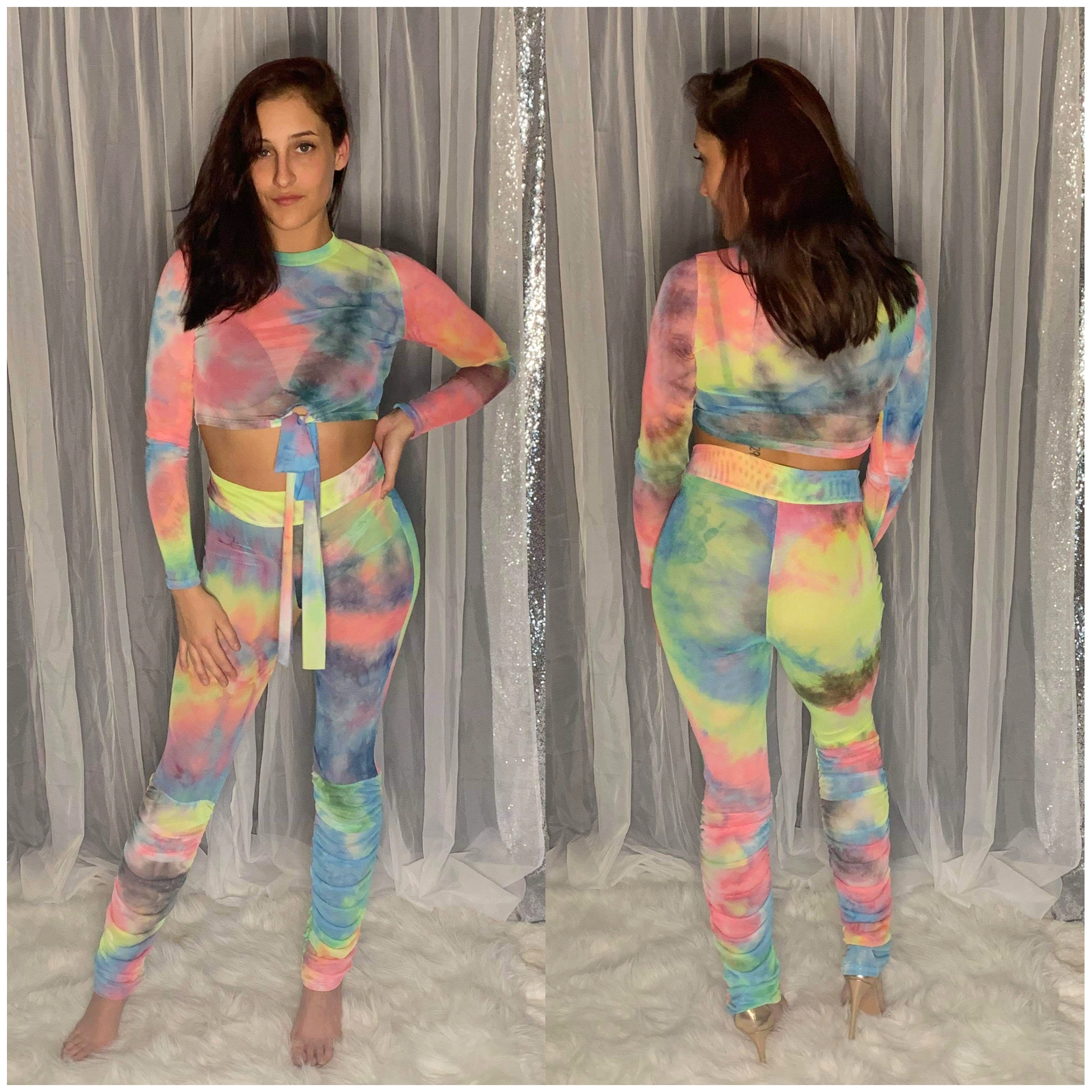 MESH ROUNDNECK LONGSLEEVE TOP AND LONG LEGGING 2PC SET