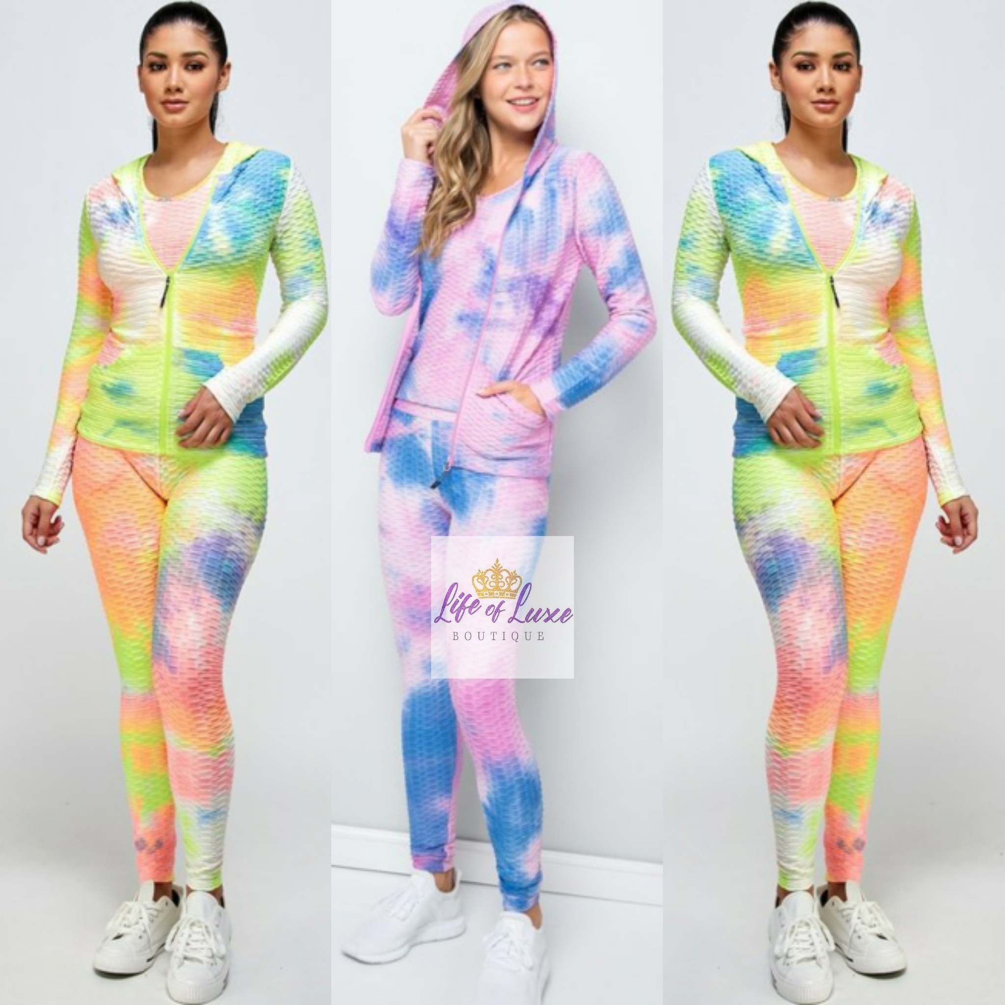 PURPLE TIE DYE SCRUNCH LEGGING 3 PIECE SPORT SET