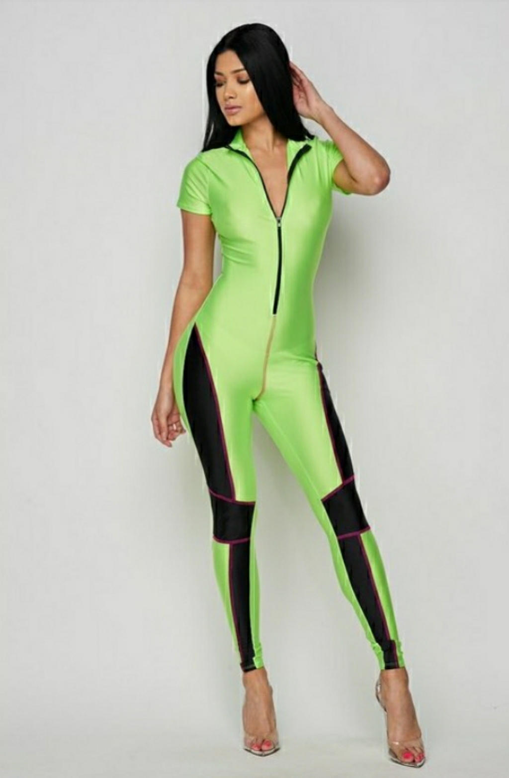 Neon jumpsuit with zipper front